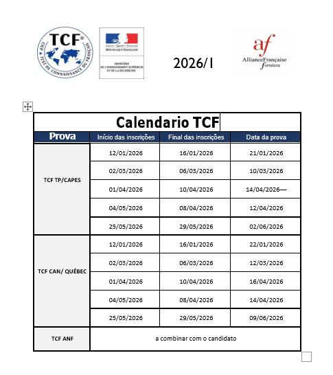 Calendário de provas TCF 2026-1